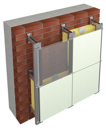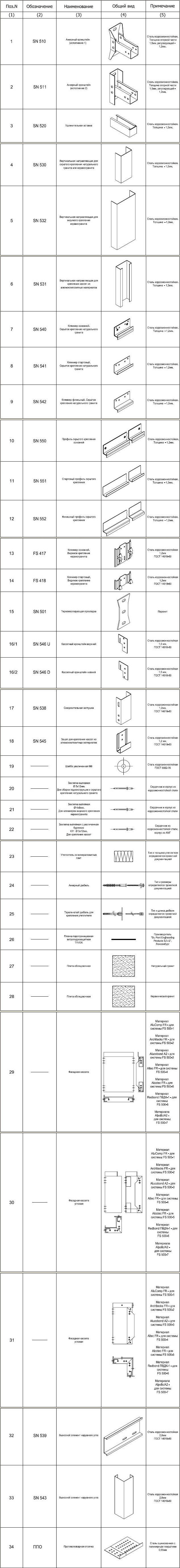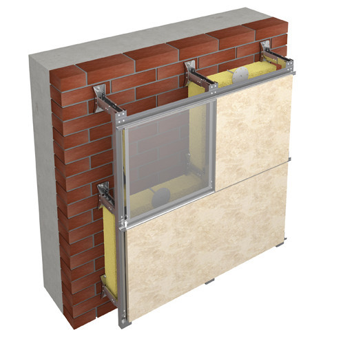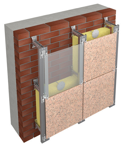 Подоблицовочная конструкция может быть выполнена из нержавеющей стали или стали с коррозионностойким покрытием в виде цинка или алюмоцинка с дополнительным порошково-полимерным окрашиванием. Диапазон регулировки относа от стены от 108 мм до 270 мм. Система имеет четыре модификации, отличающиеся материалом облицовки и способом её крепления.